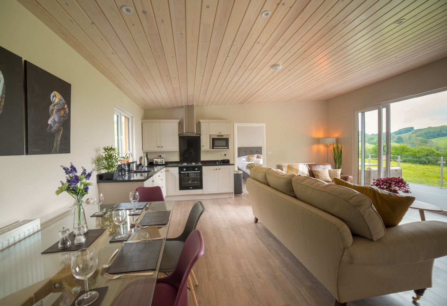 Our Kite’s Nest lodge is situated at the edge of the valley, surrounded by meadows, ancient woodland and an abundance of wildlife. The luxurious modern accommodation caters for up to four guests and two dogs.
